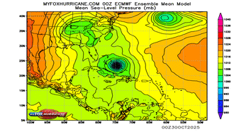The European Medium Range Forecast Model is considered one of the premiere global forecasting model for the mid-latitudes. The European Centre for Medium-Range Weather Forecasts (ECMWF, the Centre) is an intergovernmental organization supported by 34 countries and based near London. The model is run twice a day at 0z and 12z out to 10 days in the future. The ECWMF model runs both in a "deterministic forecast" mode and as an ensemble. Deterministic refers to cause and effect. An ensemble forecast takes the output from many deterministic models and creates an average or consensus. The graphic above shows the ECWMF deterministic global dynamical model.